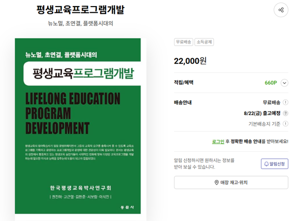 평생교육프로그램개발론 저자 권진하 입니다. 교재와 PPt 강의 자료를 부탁드립니다.