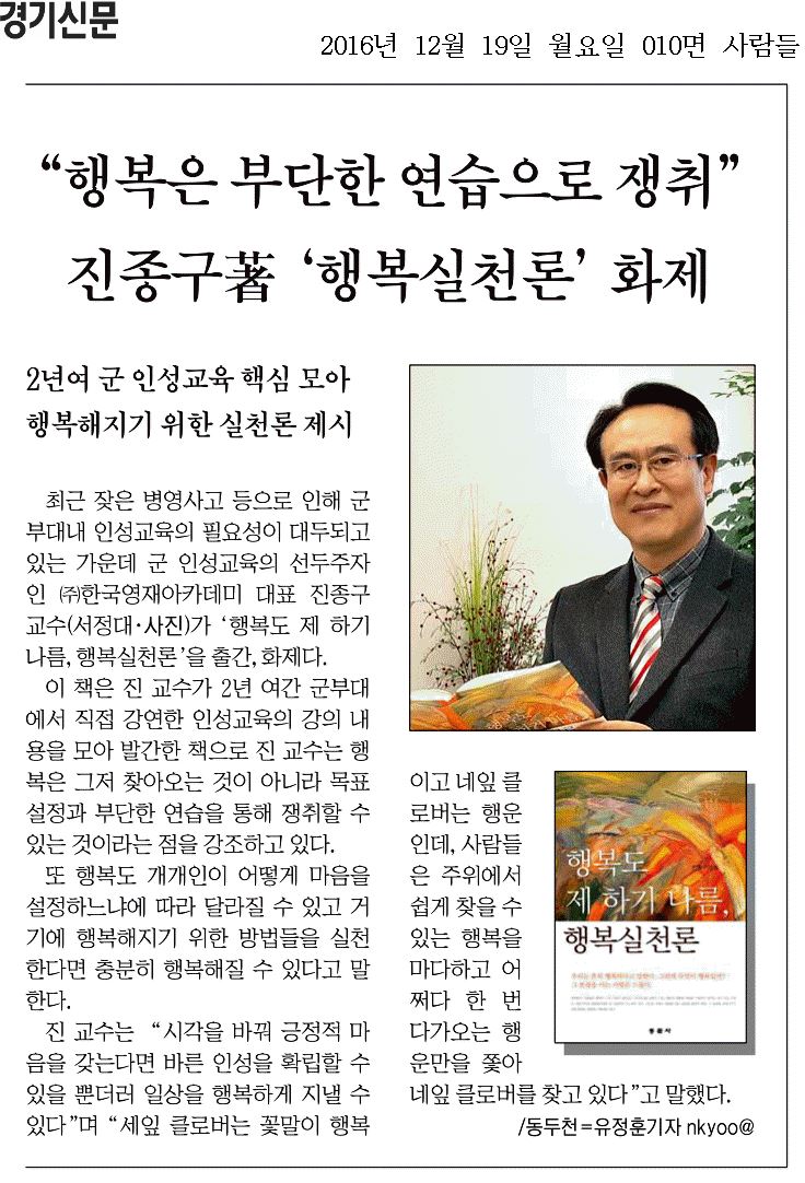 행복도 제 하기 나름, 행복 페이지 정보 작성자 진종구 댓글 0건 조회 73회 작성일 16-12-24 17:26 목록 답변 글쓰기 본문 보도된 내용입니다. 참고 바랍니다. 이전글주소지 입력이 안됩니다. 17.01.25 다음글한국교육학연구 16.12.19 댓글 0 댓글목록 등록된 댓글이 없습니다.